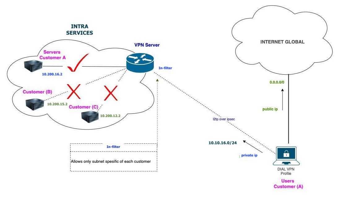 📝 When you’ll restrict access One client with another on a VPN dial, the simplest is to follow the dynamic nature of the interfaces, limiting based on the attributes of the VPN interface itself, in this case l2tp-client.